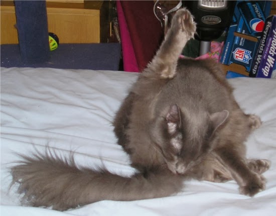 We love your baths. You should not be embarrassed. You're teaching the young kitties how to do it right.